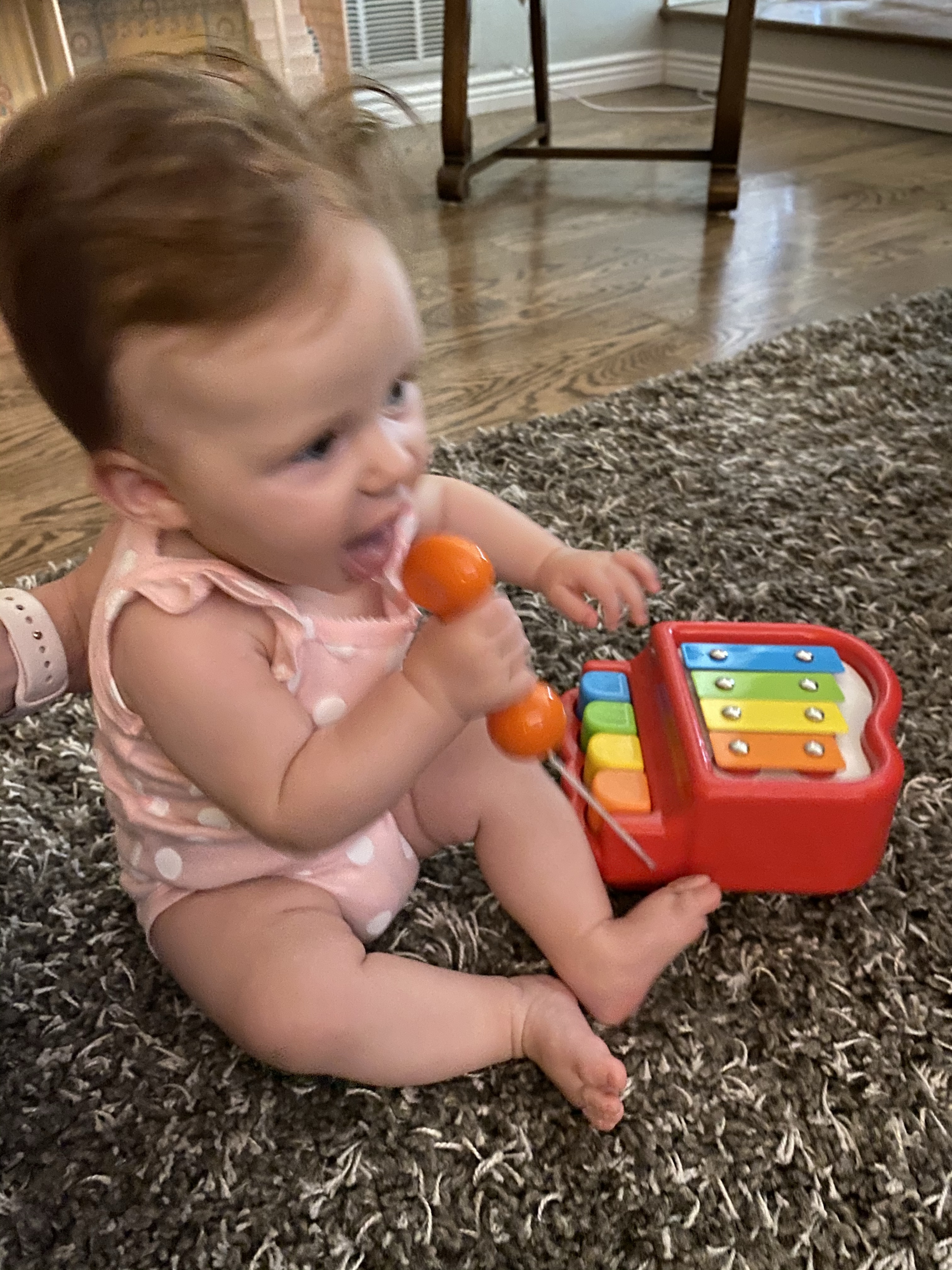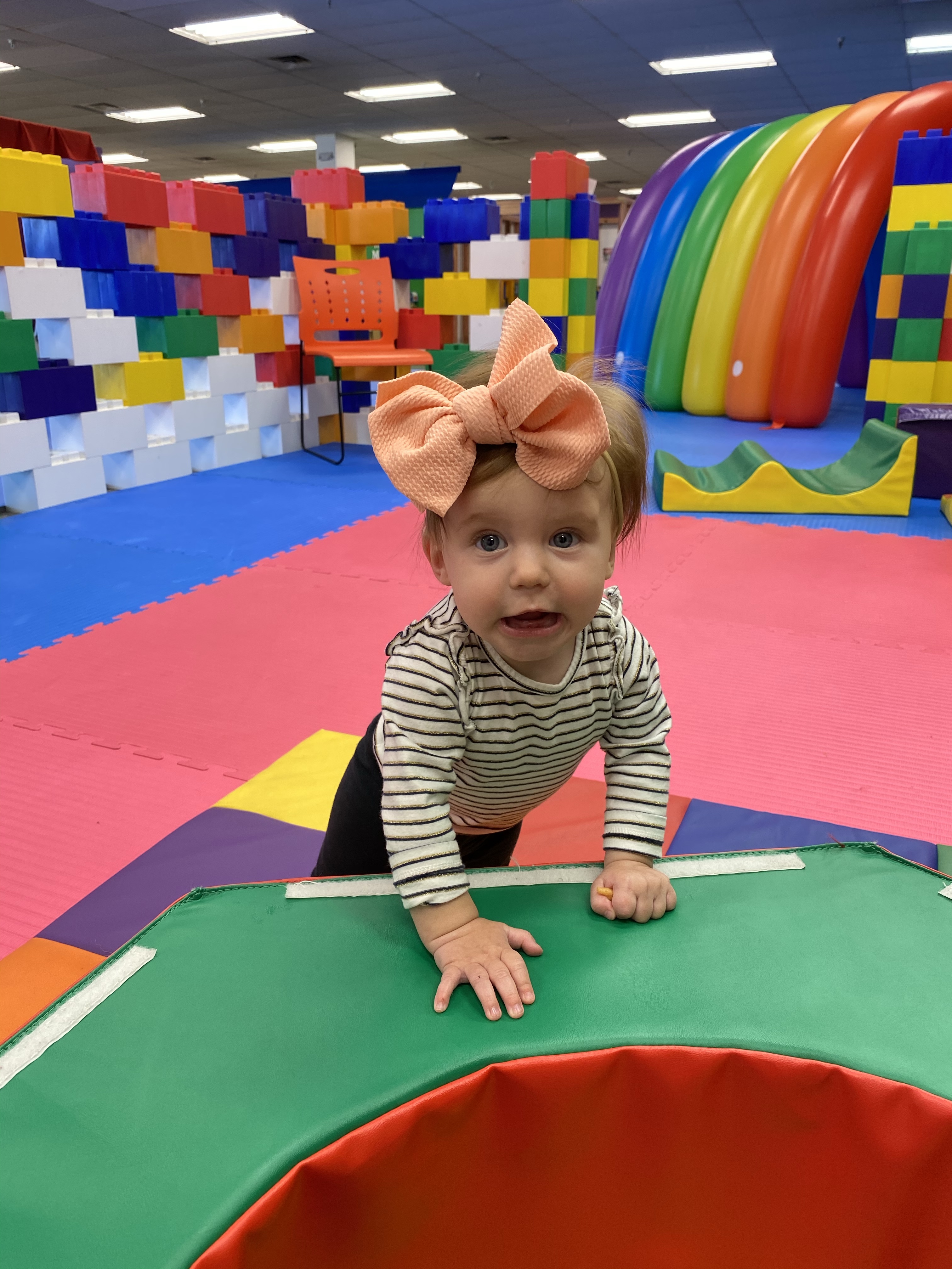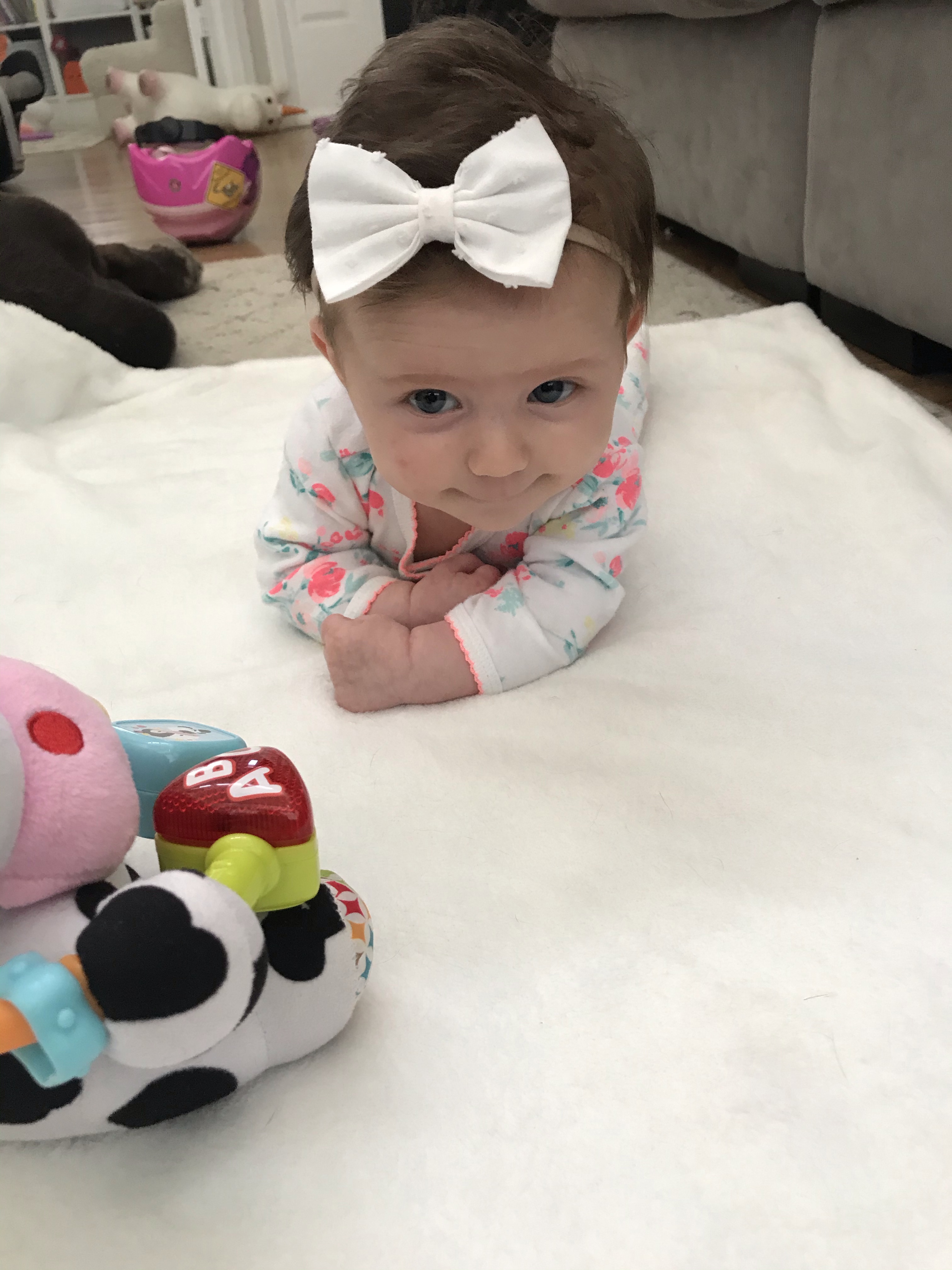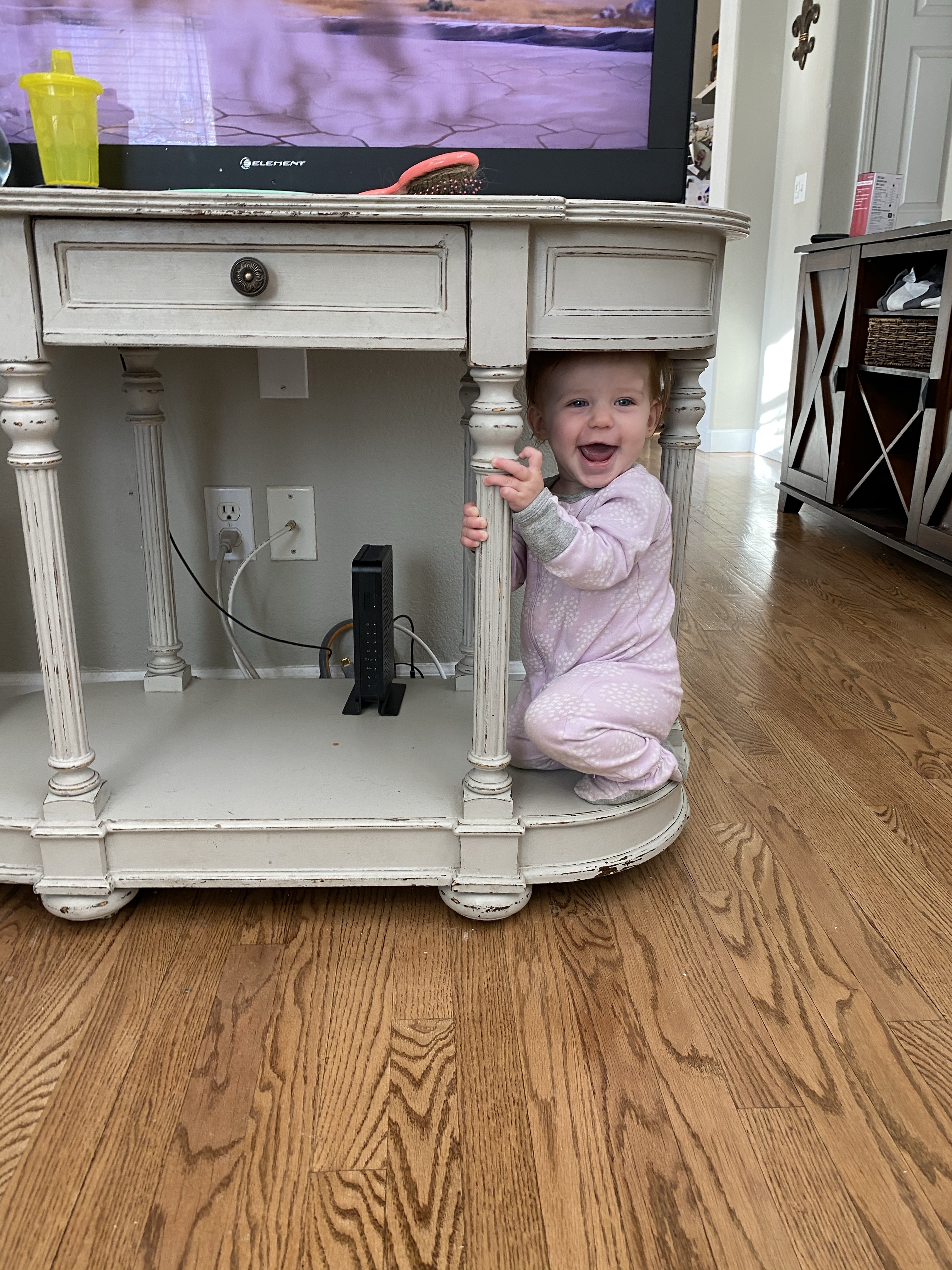Layton is a busy body. She loves to get into everything and play whatever big sis is playing with. She will find every tiny little toy or piece of paper she isn’t suppose to have and just death grip it so I don’t take it away from her haha. we call her a naughty baby cause she is always up to something naughty and getting into mischief. She loves playing in the cabinets and making a mess with all the things.