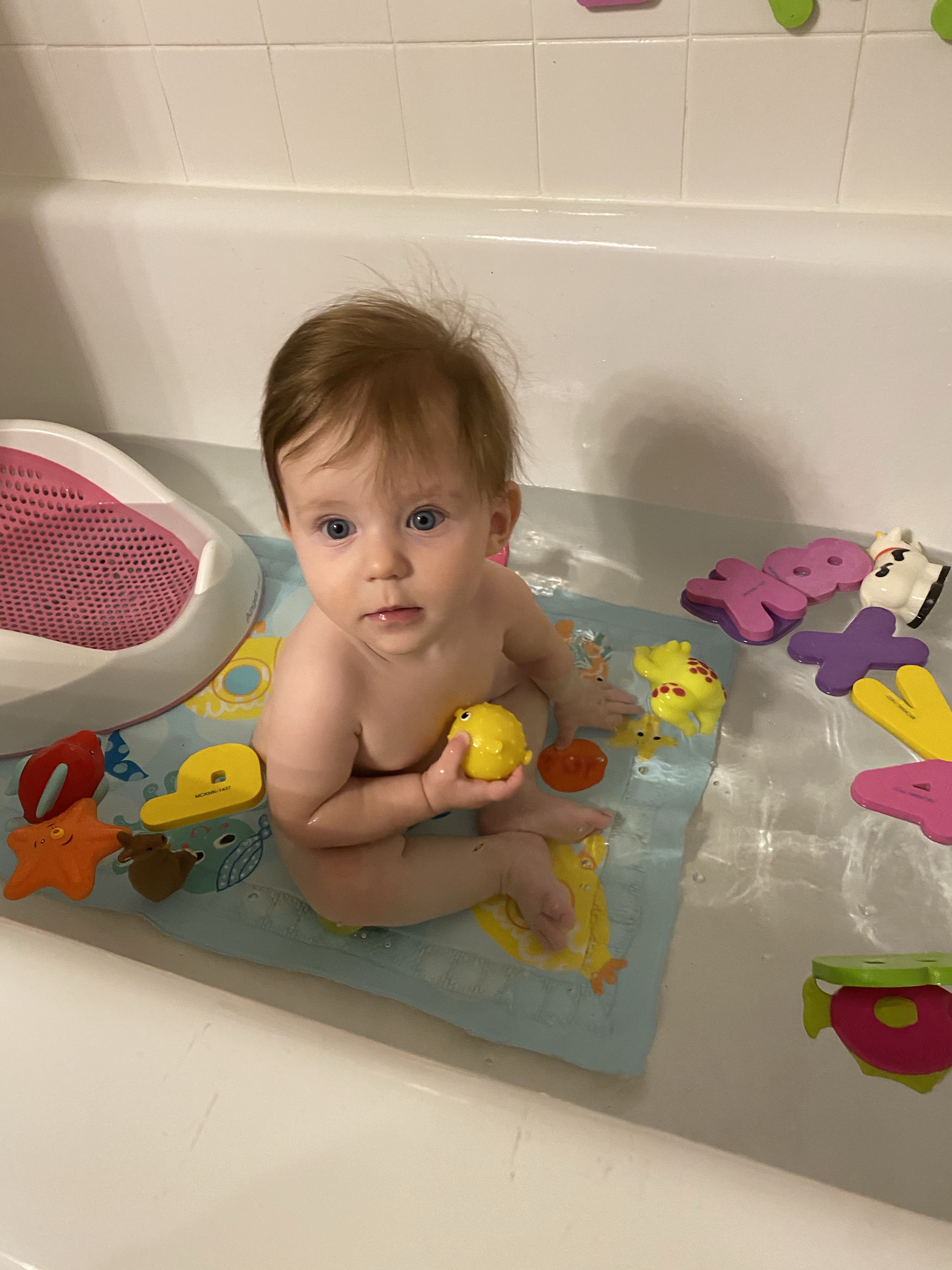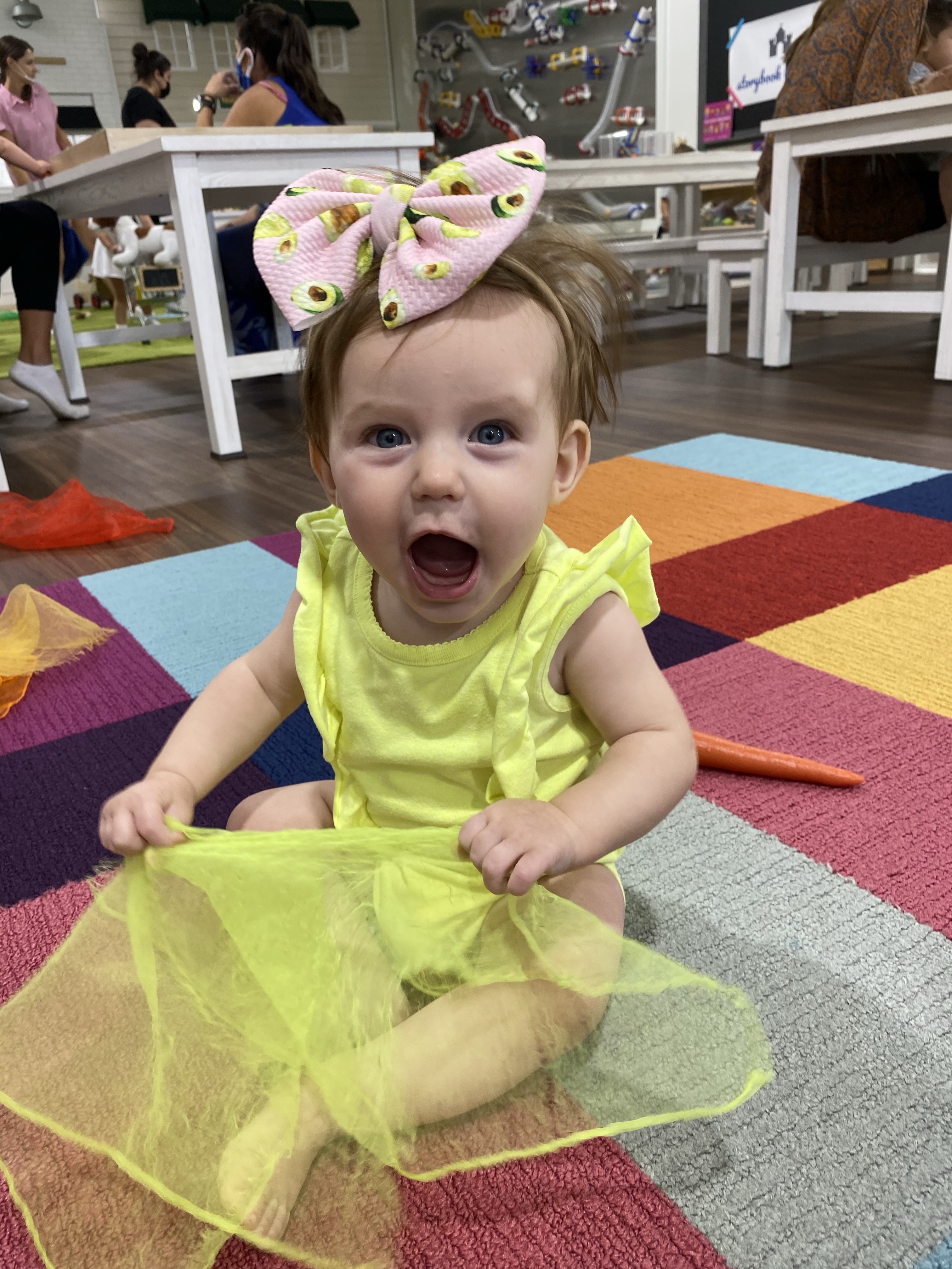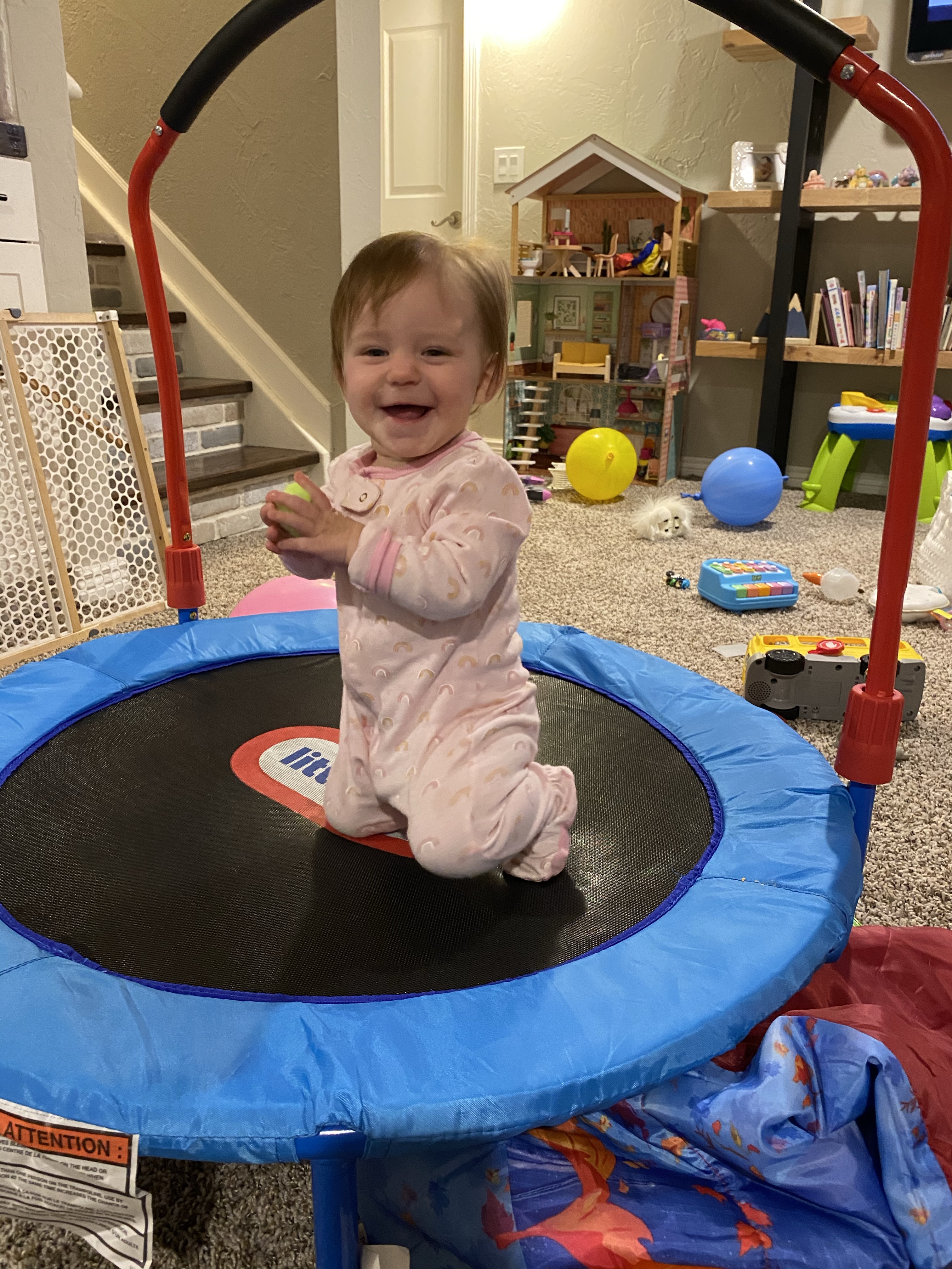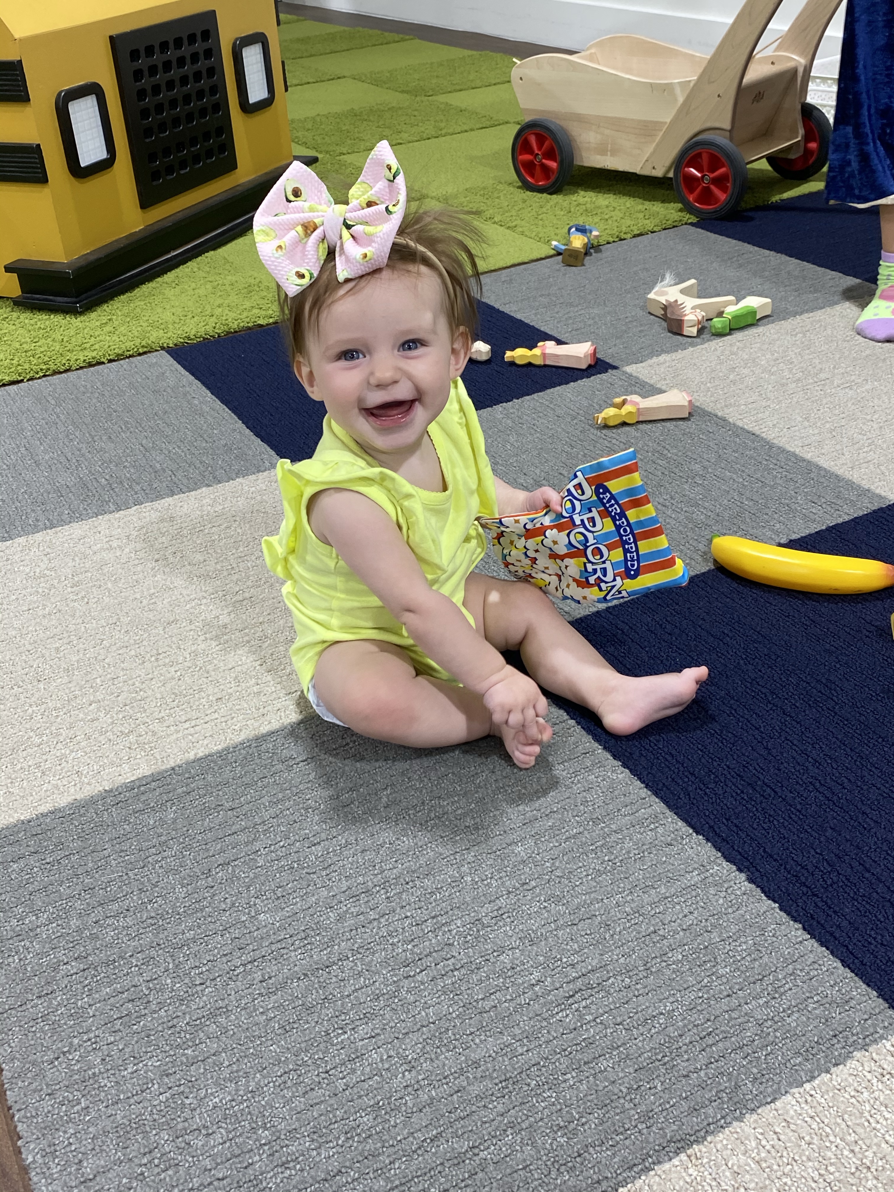 Layton is a busy body. She loves to get into everything and play whatever big sis is playing with. She will find every tiny little toy or piece of paper she isn’t suppose to have and just death grip it so I don’t take it away from her haha. we call her a naughty baby cause she is always up to something naughty and getting into mischief. She loves playing in the cabinets and making a mess with all the things.