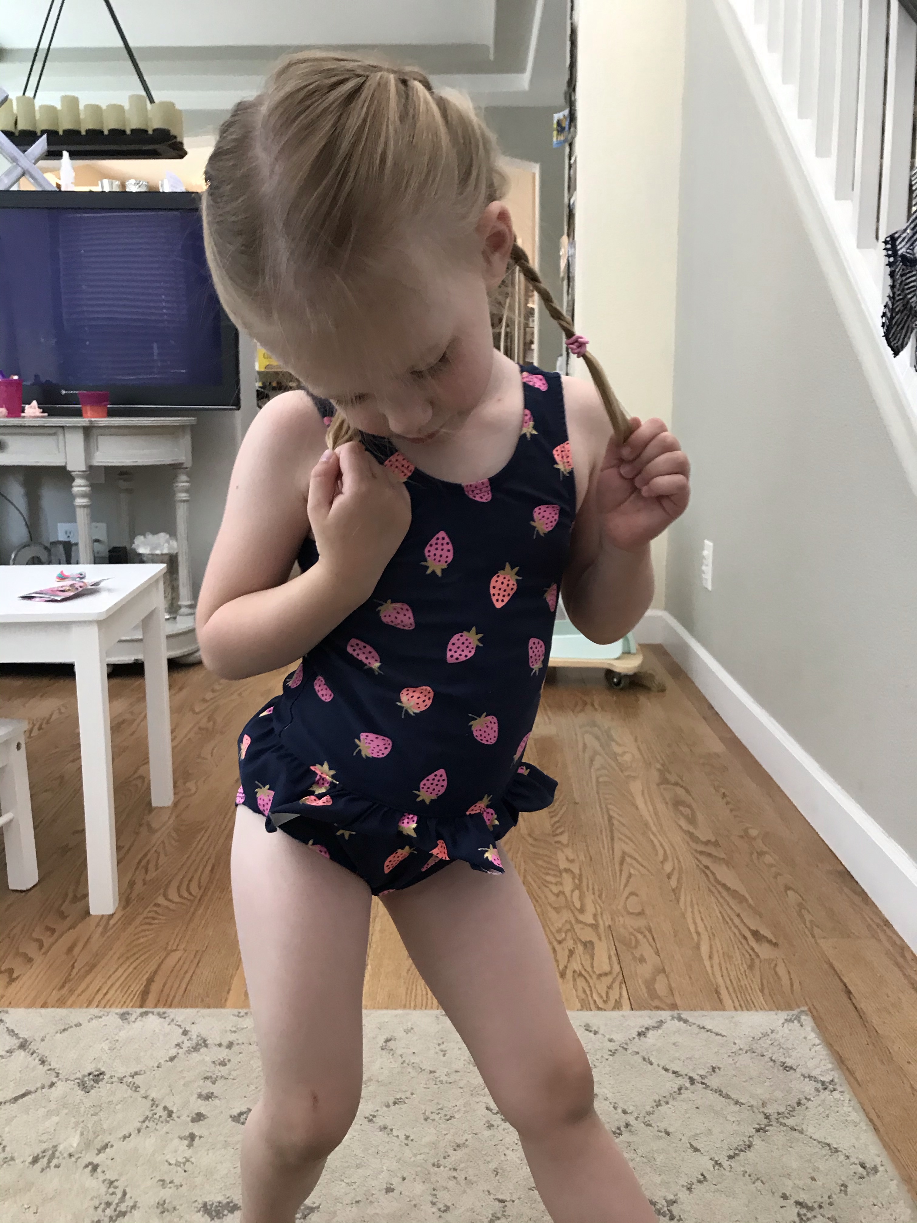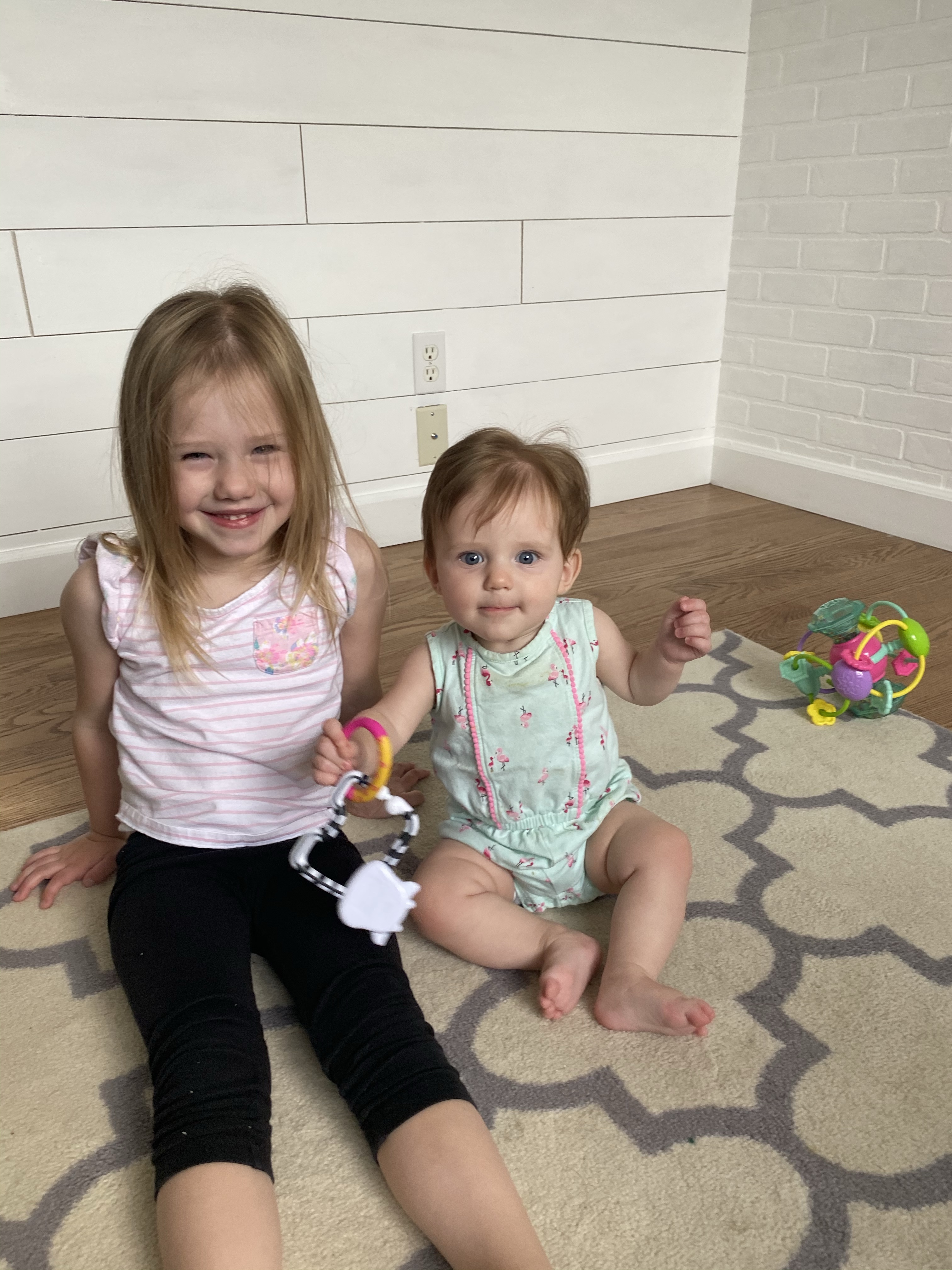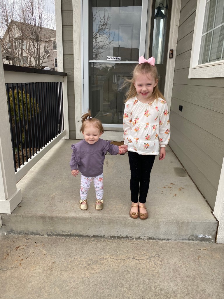 Layton and Londyn usually play really well together and they are still very obsessed with each other and will love on each other and give hugs and kisses and cuddles. It’s the sweetest relationship and I hope they stay close forever. Londyn will get a little annoyed when Layton continues to steal her toys but she is pretty good about sharing and helping sissy find a new toy. Layton isn’t into many specific toys, she likes kissing her baby dolls and playing with blocks but she usually is getting into things she shouldn’t have or trying to climb on things she shouldn’t be climbing on. She likes to sit on our kids sized table and chairs but then she gets excited and starts to climb on the chair and not just sit calmly haha so she is our wild child!