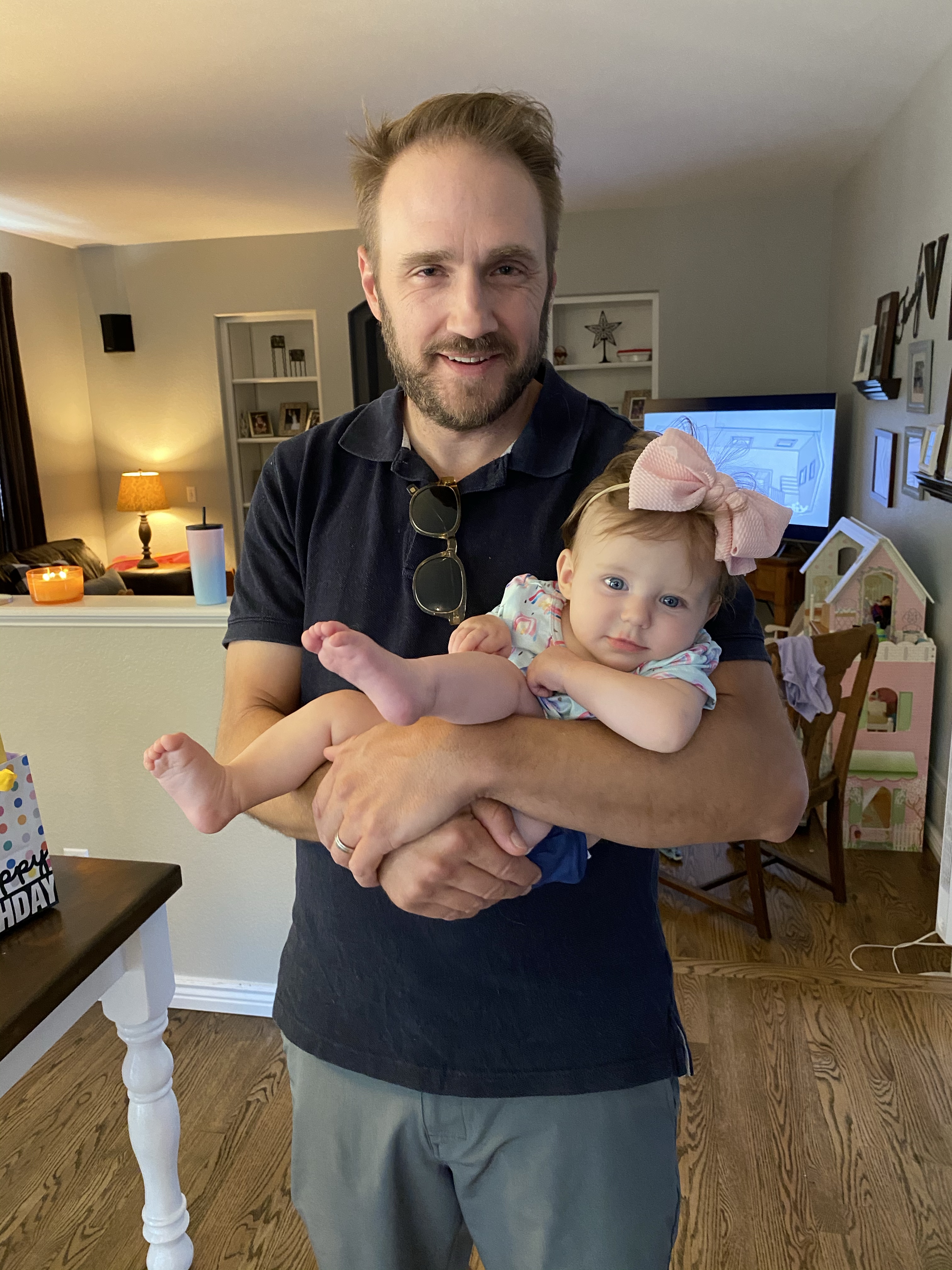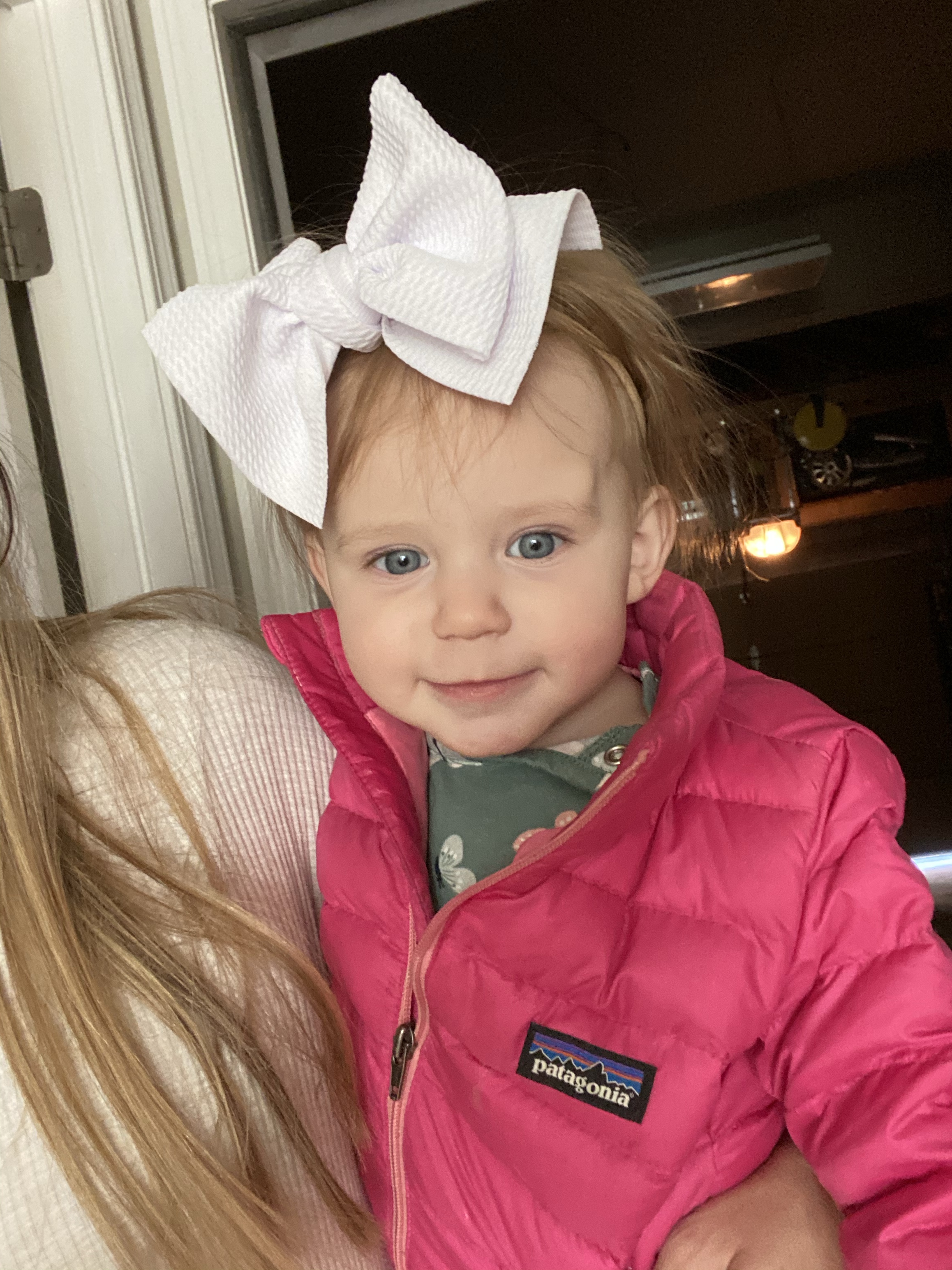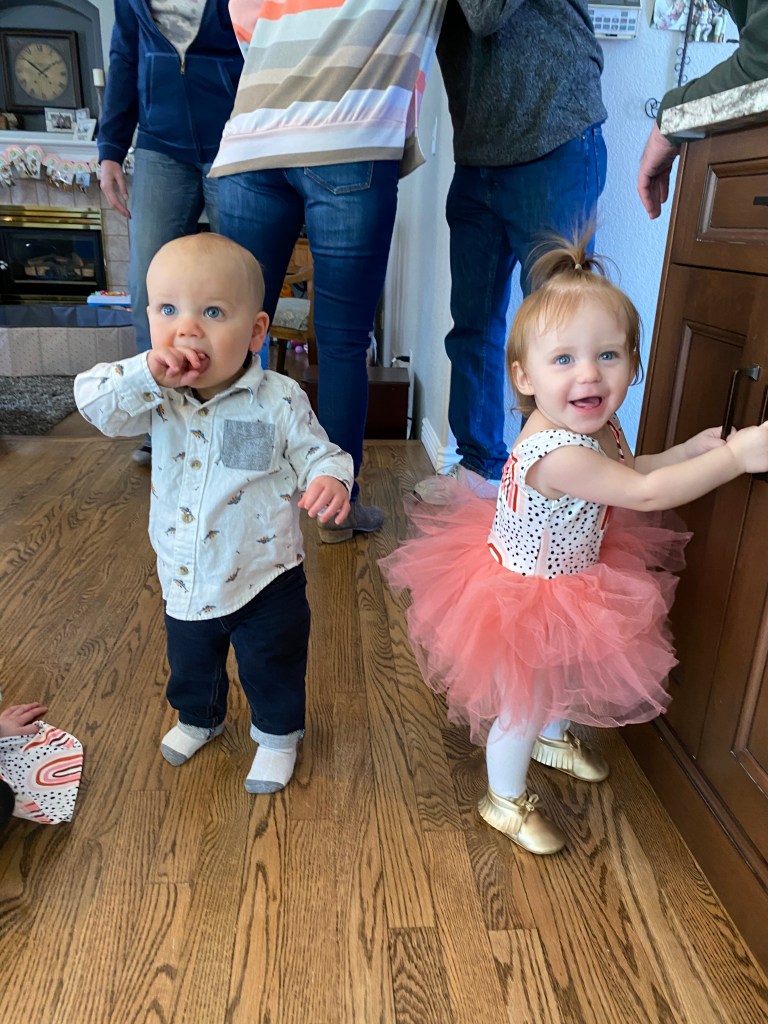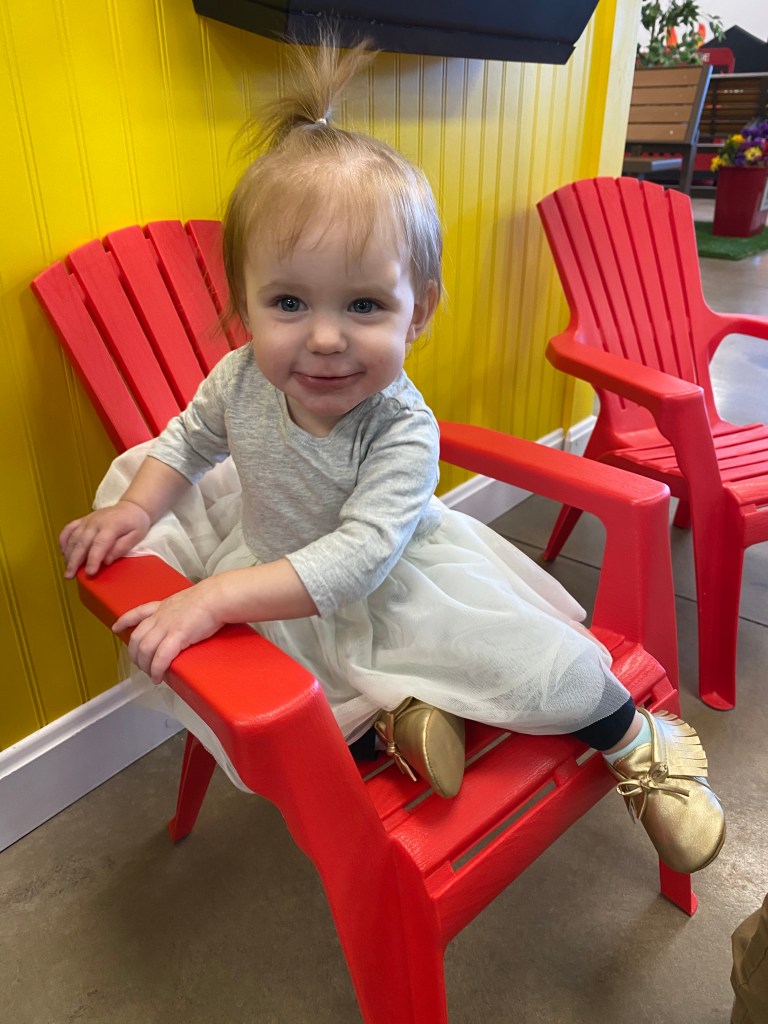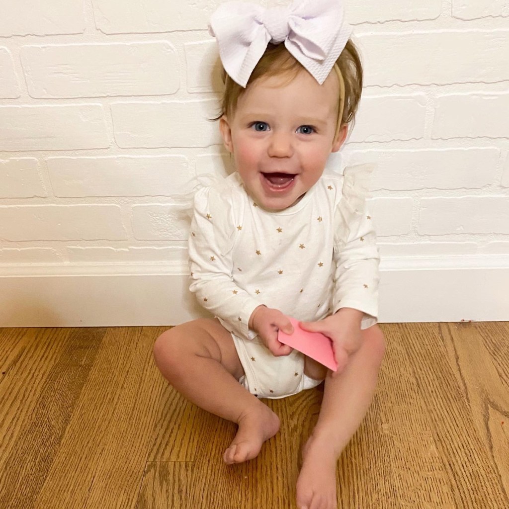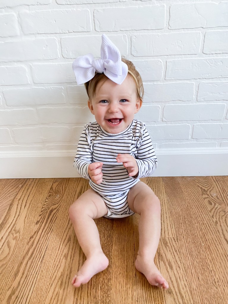 Layton is almost 15 months old and she is at the most fun age! I kinda forgot how fun this age is and how much she is learning and playing. She is so chatty and we love her baby talk and she is repeating everything we say and starting to say so many things and listen to so many things we are teaching her. She can say Londyn, puppy (her favorite thing to say), baba(second fave), outside, all done, sissy, daddy, mommy, papa, Gigi, up, help…this list goes on but she is so smart and so silly when learning new words. She also listens so well and if we ask her something she will shake her head yes and make the cutest face. She smiles when we say cheese and makes the cheesiest face. she will give kisses and has recently started giving hugs, like actual hugs with arms out. sweetest little baby. She says “baby” and will point to the pictures of her on the wall and wanna give the baby in the picture kisses.