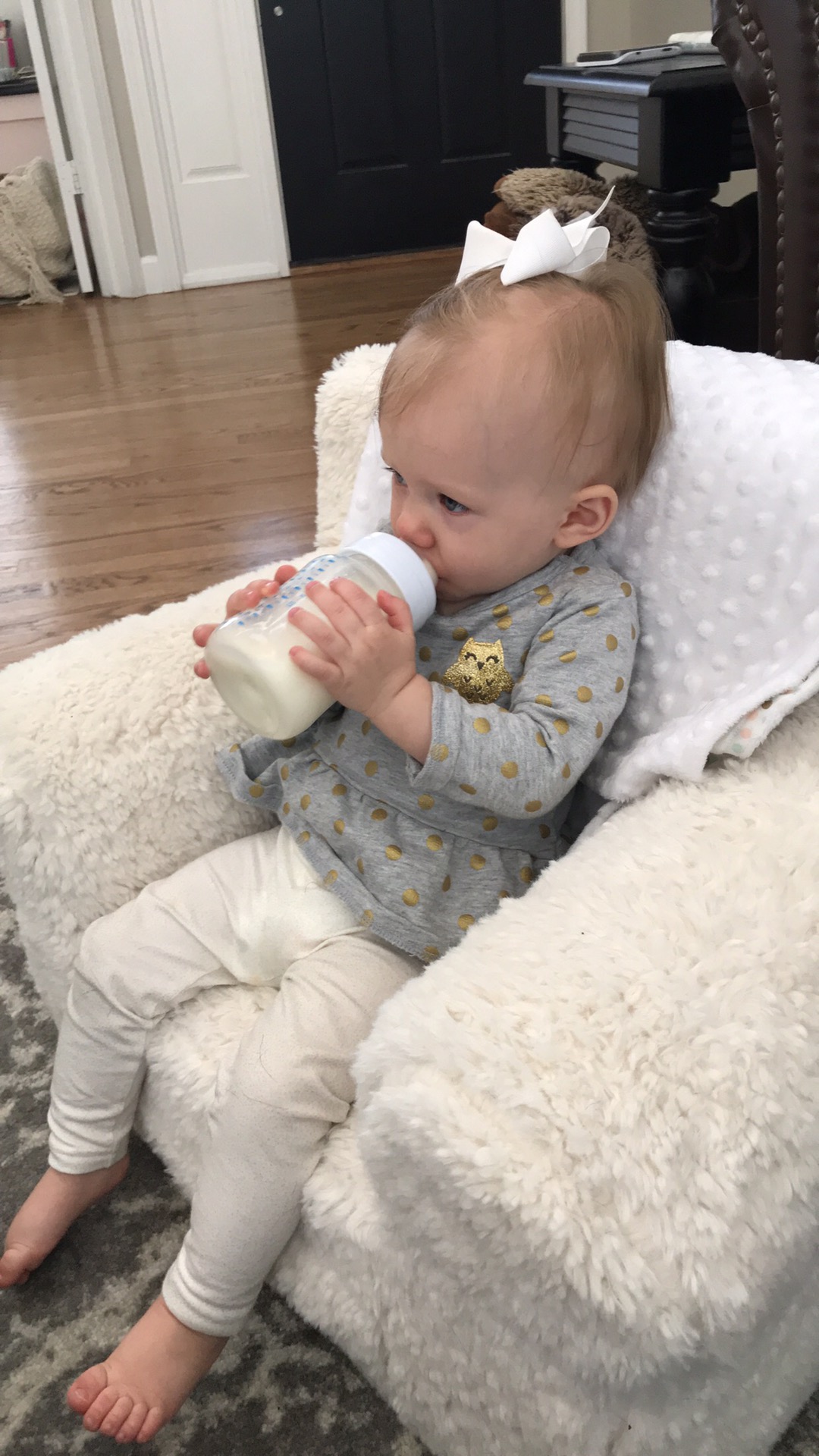 She loves to be held and rocked to sleep. Which is kinda hard with a busy big sister around. I have been wearing her so I can get things done like put on makeup or make lunch. She loves it! She loves her swing, watching her big sissy play & has been refusing a Paci. She is eating so well & has taken a bottle from Mitch a few times too! She has some leg rolls which Im loving that she is a little chunky! Big sissy never had rolls so I’m soaking up those chunky thighs!! She is already grown out of newborn diapers & a few newborn clothes are a little tight.